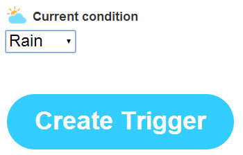 6. “天气情况发生变化”似乎还不够详细,默认为“将要下雨”,用户可以也可以指定“下雪”、“阴天”或“晴朗”作为“条件”。随后点击 “Create Trigger” 完成“触发器”设置: